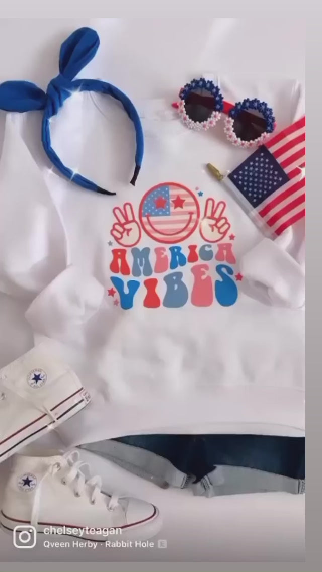 This is a listing for a toddler-size sweatshirt with an American Vibe design printed on the front.