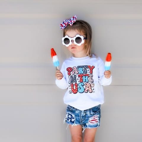 This is a listing for a toddler-size sweatshirt with a Party in the USA design printed on the front.