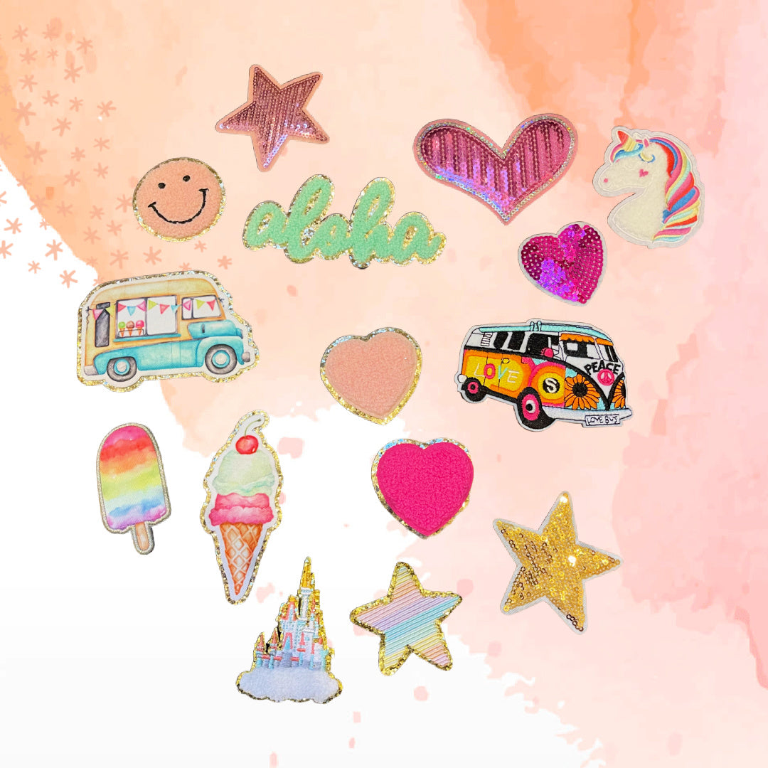 3. Pick some of your kiddo's favorite things for patch selection- Patch images are shown but sometimes vary. Reach out if you have other patches in mind. COLORS WILL VARY DEPENDING ON AVAILABILITY BUT ALL STYLISH GIRLY COLORS Requests can be made and we will do our best to accommodate them.