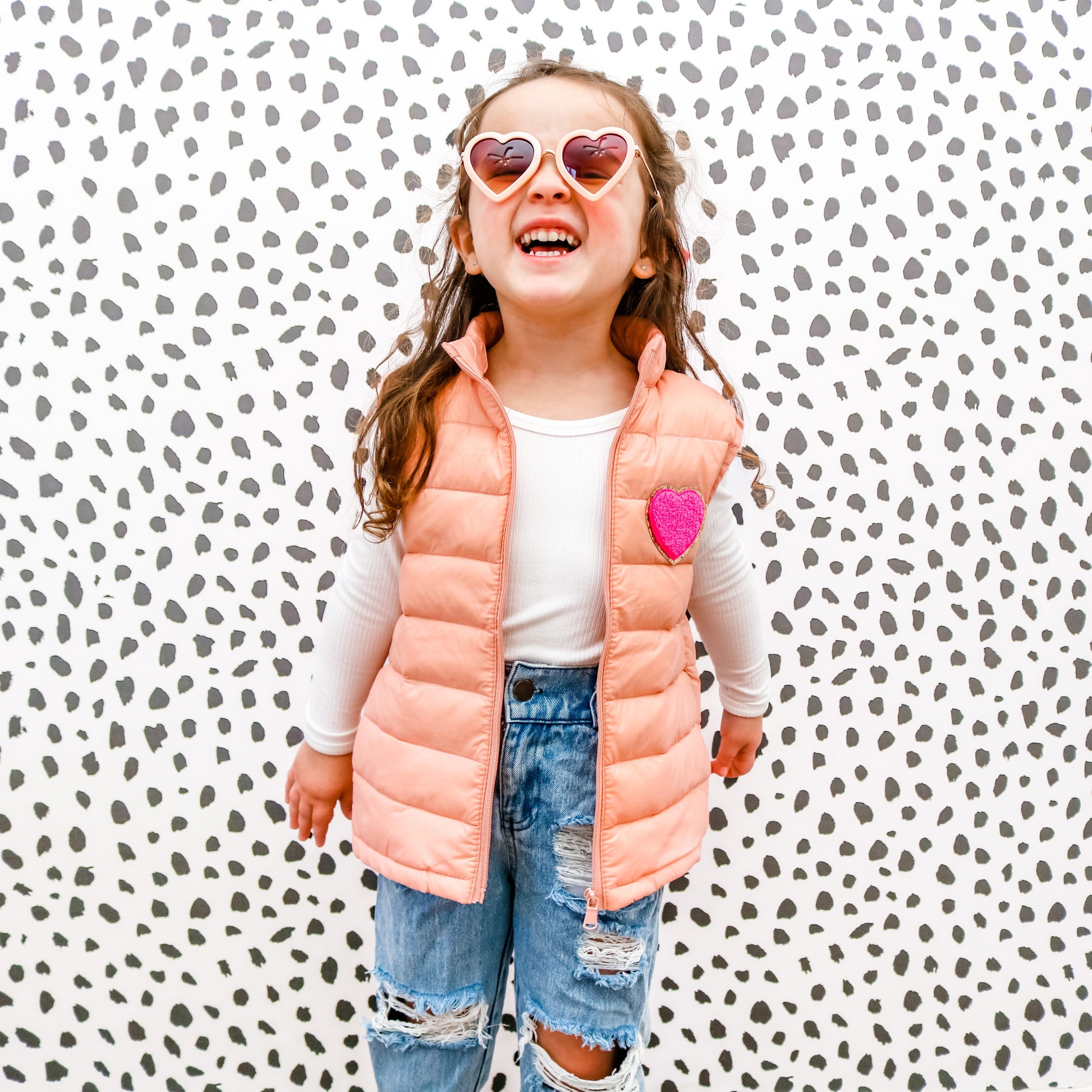Let your kids feel great in this unique and personalized Pink lightweight puffer vest. They will be the most stylish kid in school and definitely turn some heads! This lightweight puffer vest is high quality and so stylish with the most adorable chenille patches attached!! Choose from the options available and make it your very own! Mermaid, and unicorn lovers, we have patches for you! True to size. If you are considering layering then best to size up! Would make the best holiday or birthday gift!!