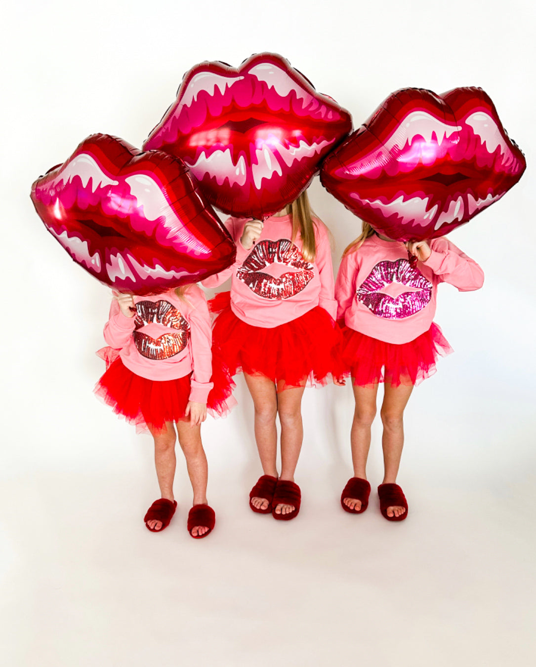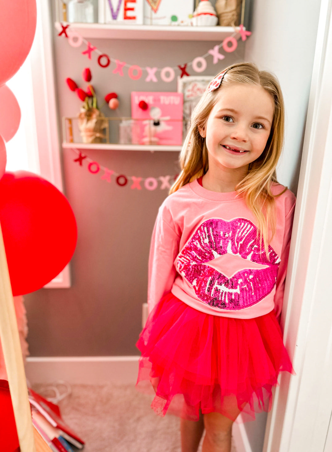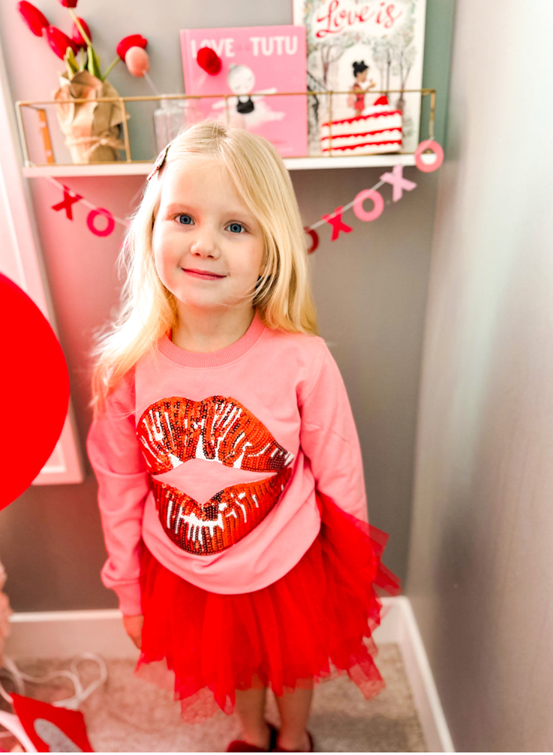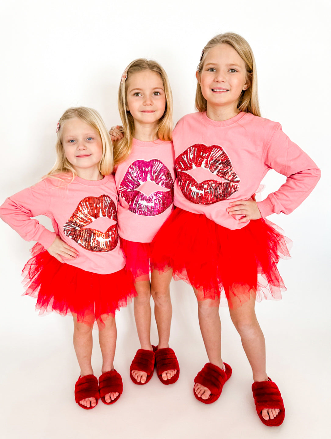 Get into the love spirit with our adorable sweatshirt, designed with a shimmering 'Lips' patch—ideal for kids this Valentine's Day. Tailored for kids, it's perfect for celebrating love this season.