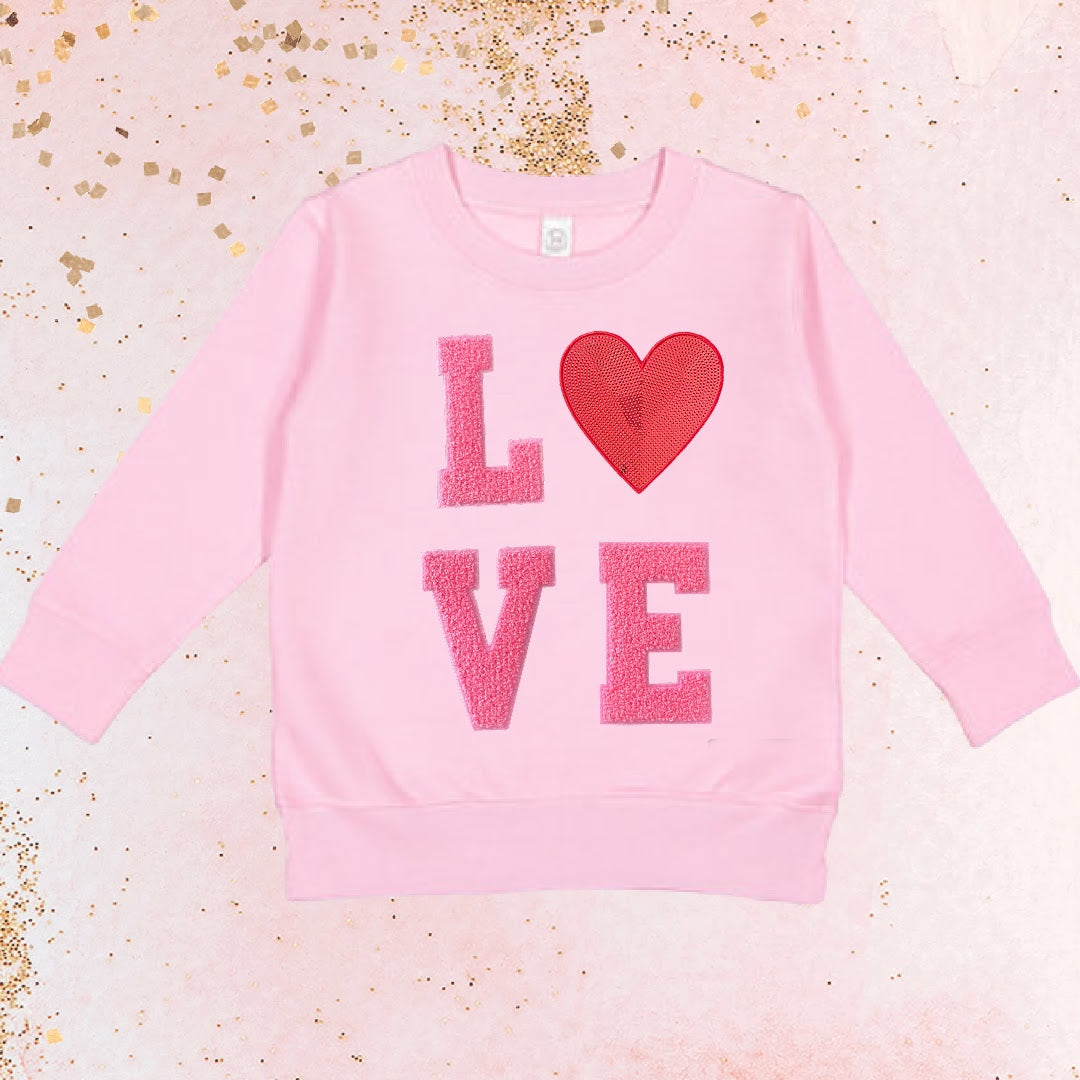 Get into the love spirit with our adorable sweatshirt, designed with a shimmering 'Love' patch—ideal for kids this Valentine's Day. Tailored for toddlers, it's perfect for celebrating love this season.