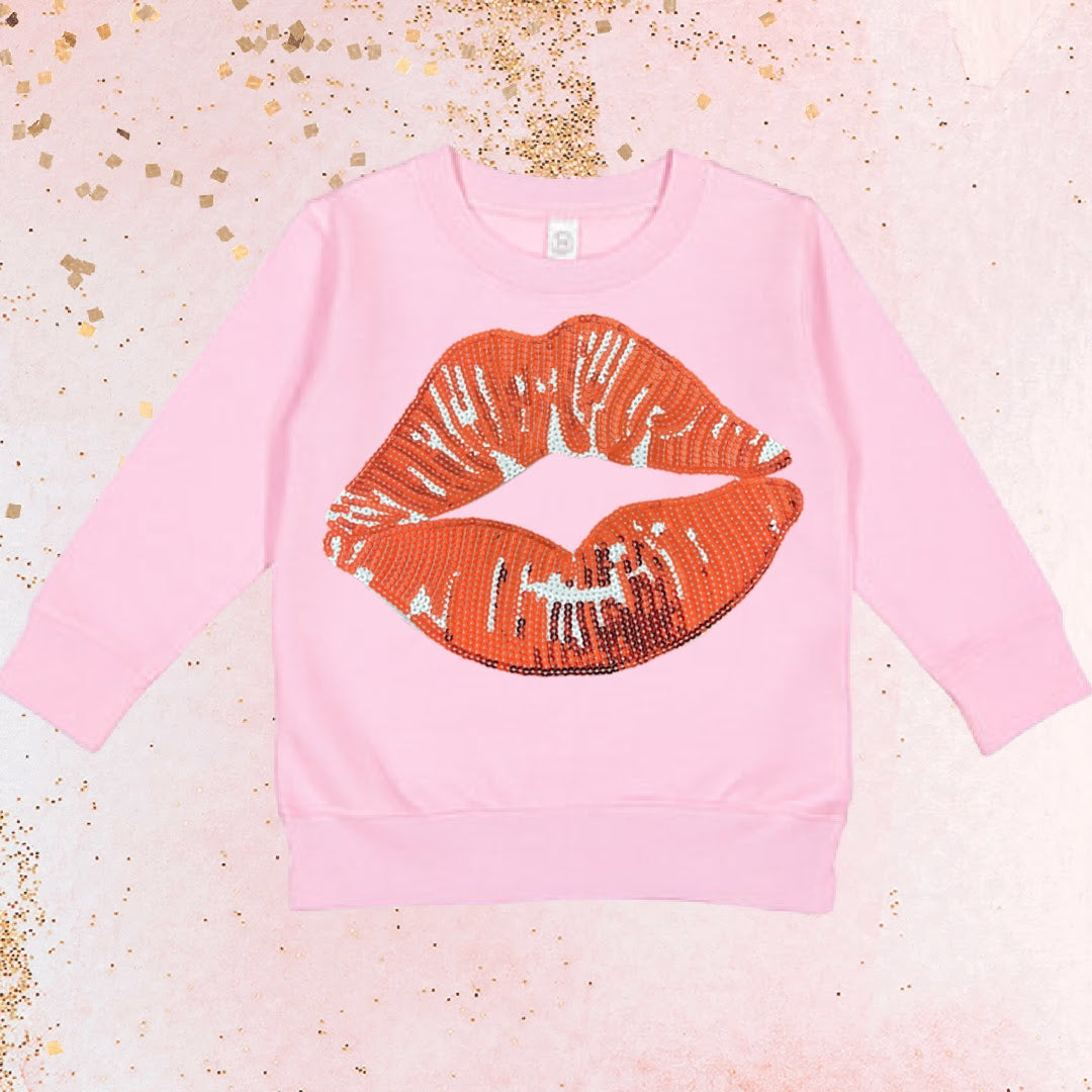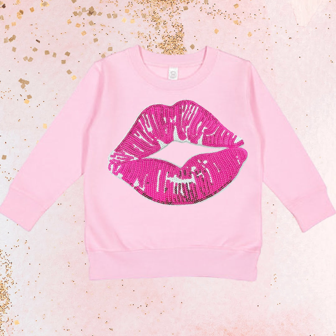 Get into the love spirit with our adorable sweatshirt, designed with a shimmering Pink 'Lips' patch—ideal for kids this Valentine's Day. Tailored for toddlers, it's perfect for celebrating love this season.